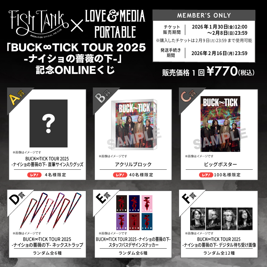 FISH TANK × LOVE & MEDIA PORTABLE MEMBER’S ONLY「BUCK∞TICK TOUR 2025 -ナイショの薔薇の下-」記念ONLINEくじ実施!