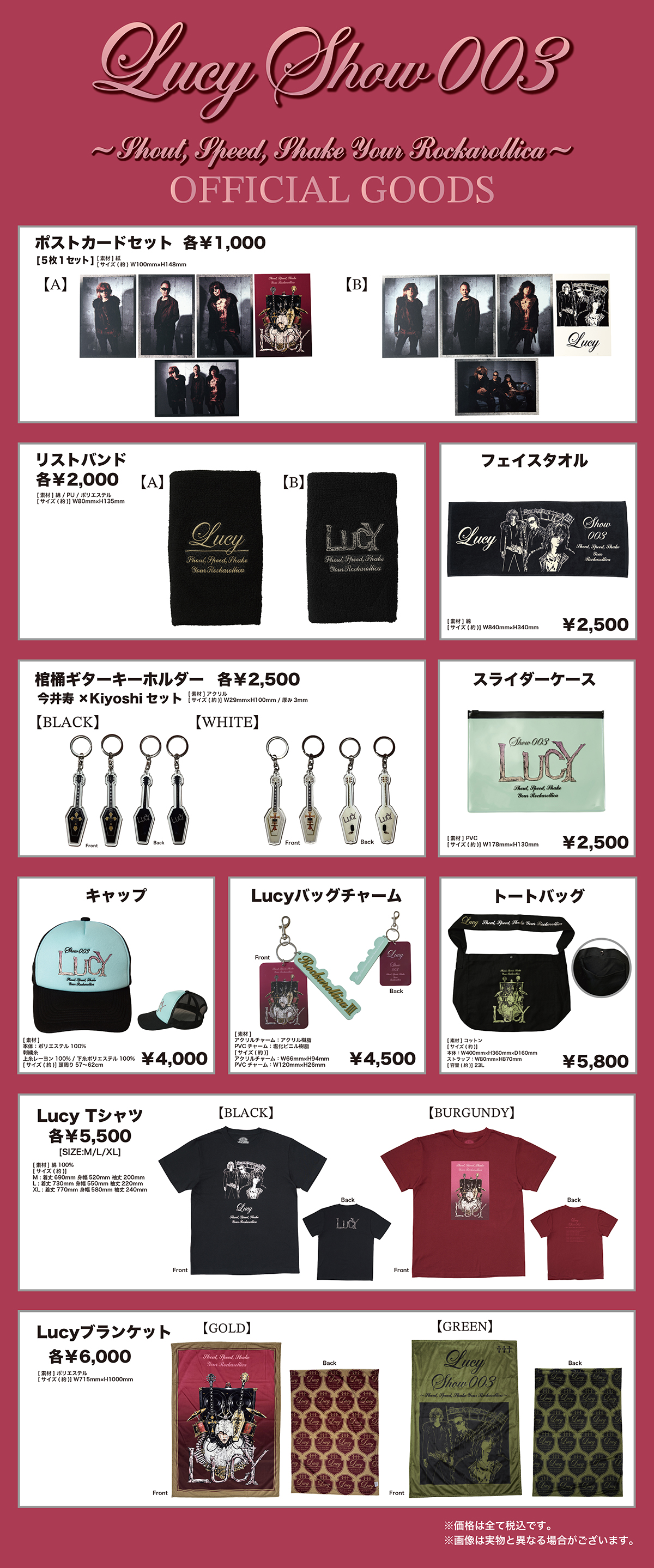 Lucy(今井寿):「Lucy Show 003 ~Shout, Speed, Shake Your Rockarollica~」オフィシャルグッズ公開