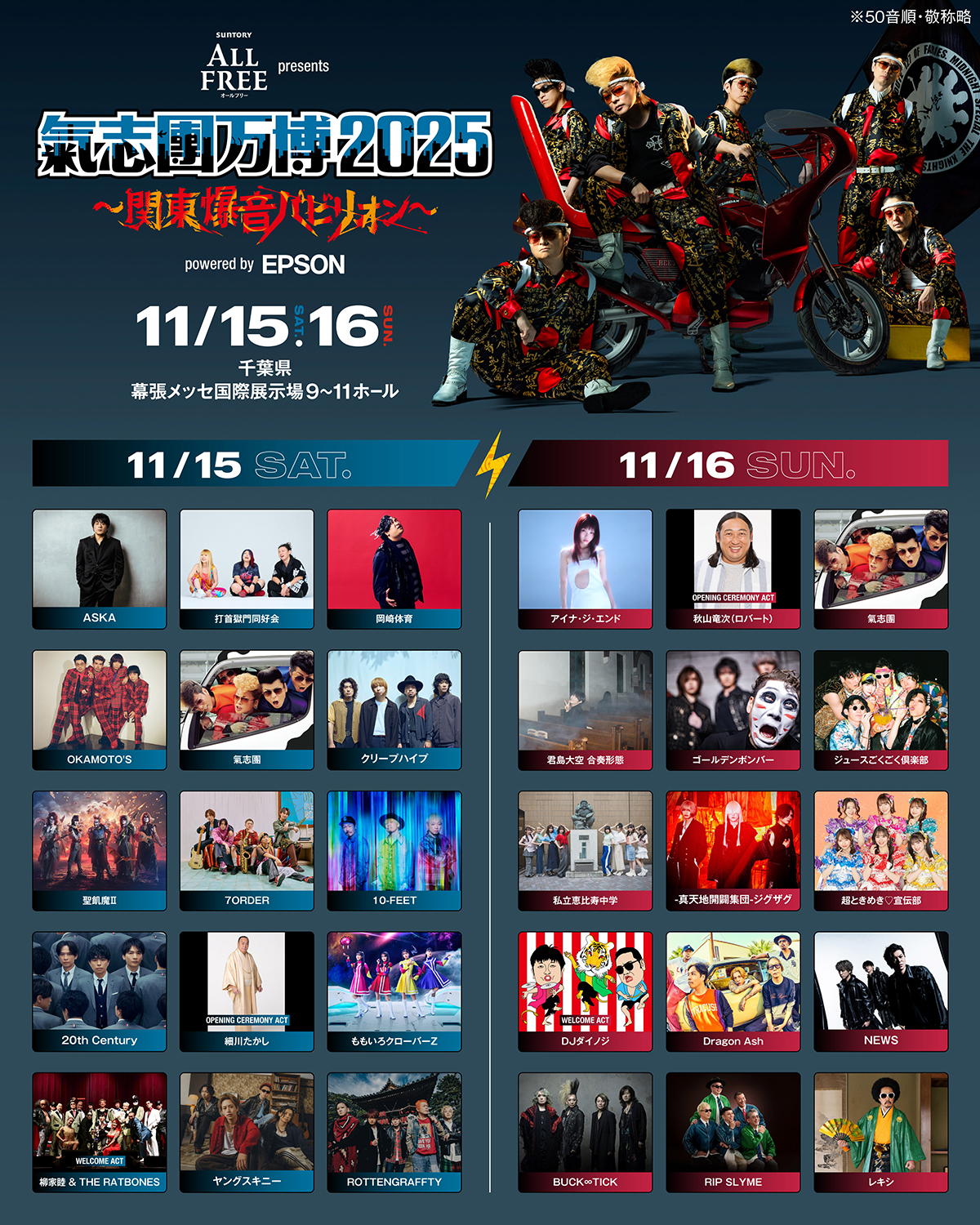 「サントリー オールフリー presents 氣志團万博2025 ~関東爆音パビリオン~ powered by Epson」